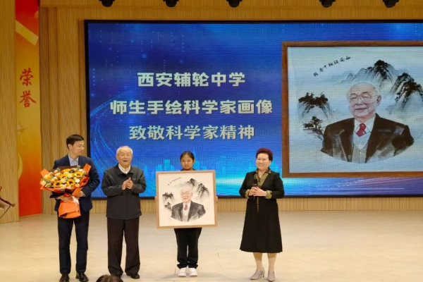 侯洵院士以生動實例闡釋科學探索的樂趣與挑戰,鼓勵同學們從課堂出發,保持好奇,勇于實踐。他強調,青年學子不僅要扎實掌握科學文化知識,提升綜合能力,實現全面發展,還應重視體育鍛煉,鍛造強健體魄,為未來的學習與發展奠定堅實基礎。在講座現場,輔輪中學學生代表向侯洵院士獻上鮮花和手繪肖像畫,以真摯的藝術表達致敬科學家的奉獻精神與家國情懷。同學們也踴躍登臺,分享各自參與科學社團、開展實踐探索的規劃與感悟,展現出對科學事業的濃厚興趣與向往。