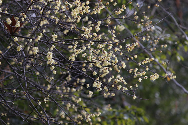 武漢植物園有蠟梅30多株,主要分布于三峽植物區、聯誼亭及科普樓前。園內收集了柳葉蠟梅、山蠟梅(即亮葉蠟梅)、突托蠟梅、浙江蠟梅、蠟梅五個物種,品種以素心蠟梅和狗蠅蠟梅為主。素心蠟梅色澤純黃、香氣清雅,狗蠅蠟梅花心帶紫、野趣盎然。靠近三峽植物區,只覺幽香撲鼻徹骨,沁人心田,令人心曠神怡。30株蠟梅左依馬尾松林,右傍三峽植物區,沿彎曲山徑錯落種植,形成一條蜿蜒的金色花帶。聯誼亭旁一株高大的素心蠟梅更是獨具風韻,金黃繁花與聯誼亭的飛檐翹角構成詩意畫面。科普樓前孤植的素心蠟梅則以“依墻而出”的姿態,為灰墻綠瓦增添靈動生機。