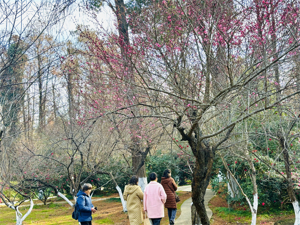 武漢植物園一年一度的“梅”好時光已經開啟。園內蠟梅已進入盛花期,金濤香海暗浮動;小梅園中宮粉梅、江梅、朱砂梅等品種也悄然展顏,為冬日鋪開一幅“雙梅競艷”的詩意畫卷,目前正是聞梅香、賞梅景的最佳時機。
