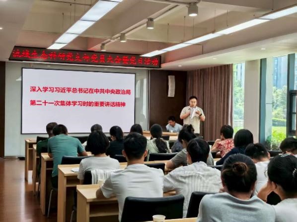 流域生態科研黨支部書記張克榮首先帶領全體黨員深入學習了習近平總書記在中共中央政治局第二十一次集體學習時的重要講話精神,并領學了“大別山精神”“抗洪精神”和“抗疫精神”。他號召大家從這些寶貴的精神財富中汲取力量,將不畏艱難、眾志成城、人民至上的精神品質,轉化為攻堅克難、勇攀科研高峰的實際行動。