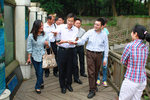 會后,任志鋒一行考察了景觀溫室、藥園、獼猴桃園、野果園、菊花圃、水生植物資源圃等專類園區。他對武漢植物園的專類園建設與管理表示了充分肯定,并希望兩園在植物引種保育等方面進行更深入的合作與交流。