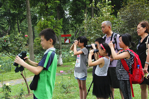儀式結束以后,省野生動物保護協會的觀鳥專家李云飛帶領小學生們在武漢植物園園區進行觀鳥及講解,并且向入園游客發放鳥類科普知識的宣傳資料。