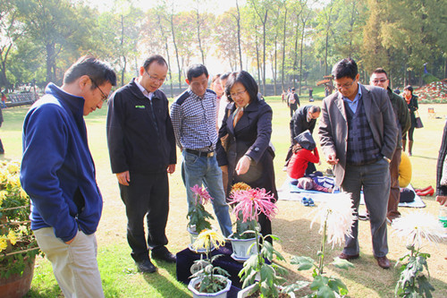 11月17日,應武漢植物園邀請,北京林業大學戴思蘭教授前來指導菊花展工作。武漢植物園主任李紹華,黨委書記、副主任羅志強,副主任張全發,園主任助理、園藝中心主任劉宏濤等參加了座談會。